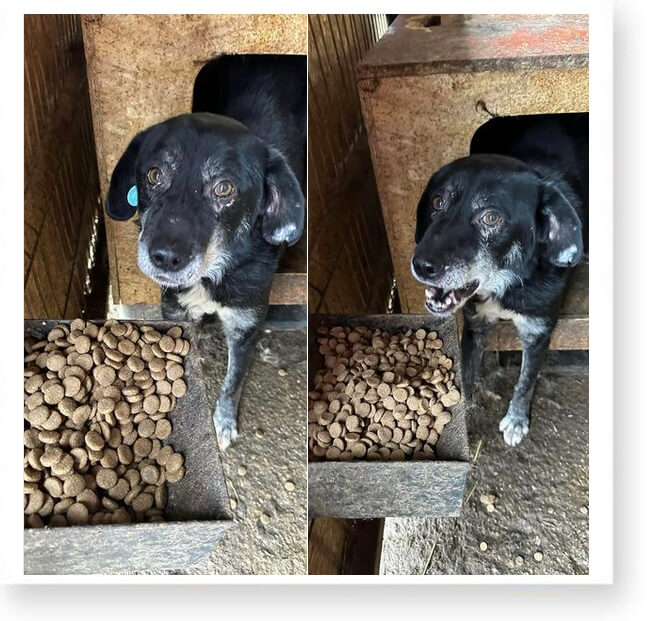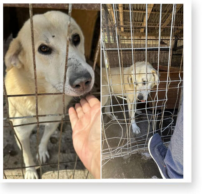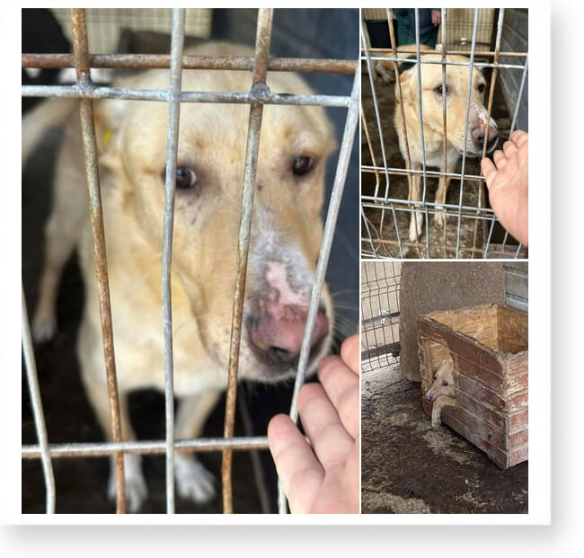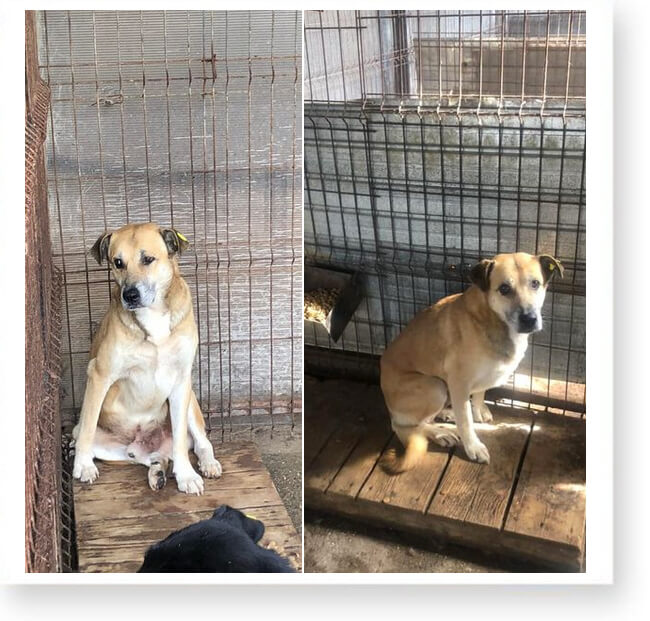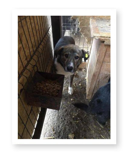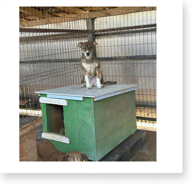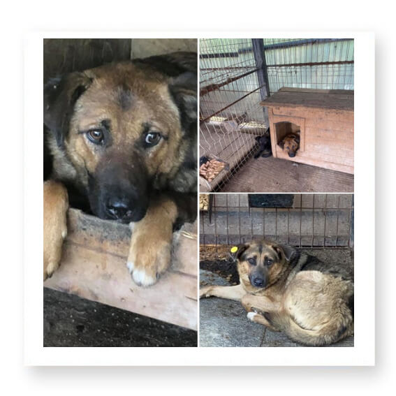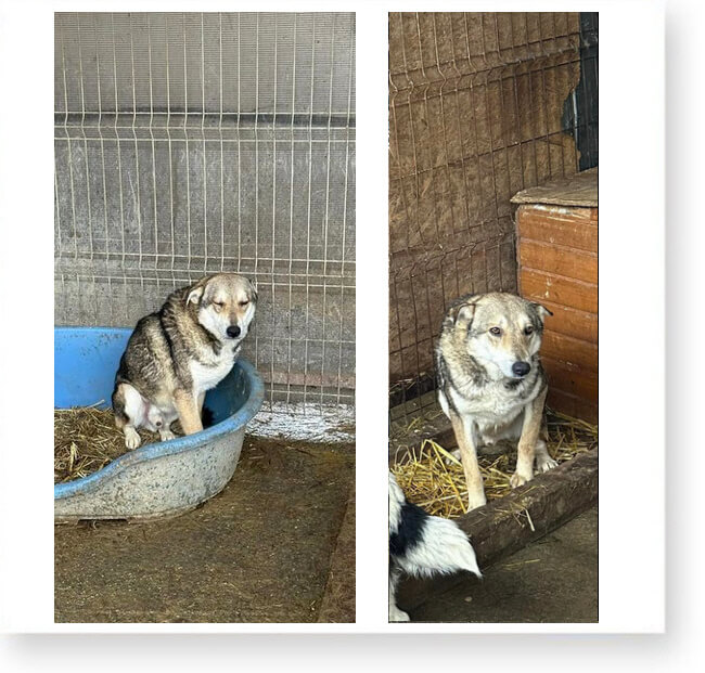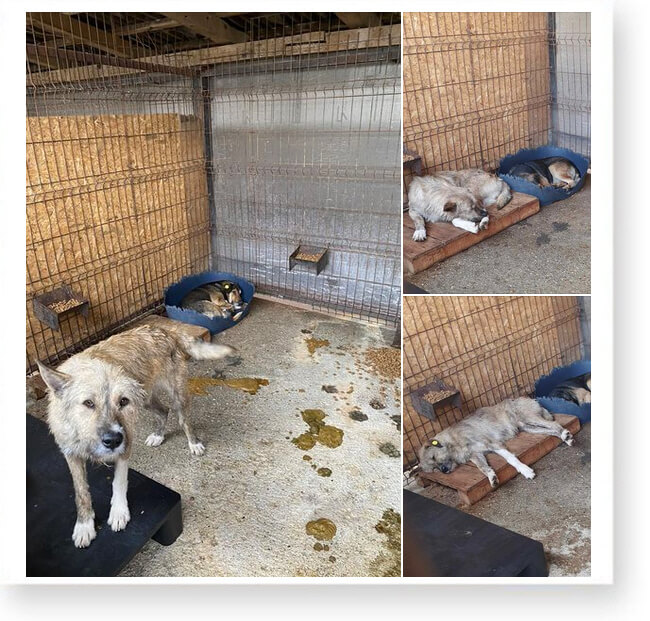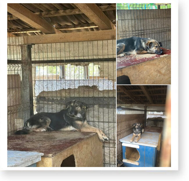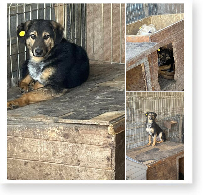 Dort ist nichts, außer einem Betonhof und anderen Käfigen mit Hunden. 😞