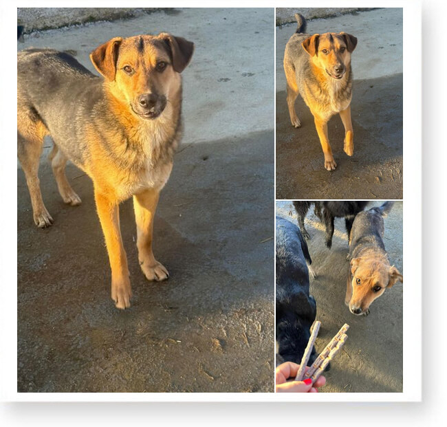 Julian ist mit allen Hunden dort sehr sozial und freundlich. Bei Menschen ist er vorsichtig geworden. Er kennt ja auch nur die schlechten Menschen 😞
