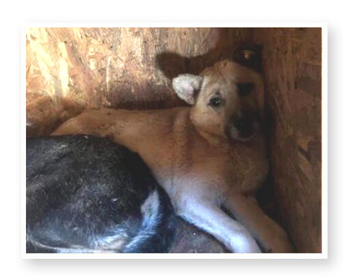 Momo liegt verschreckt in der Hütte, dort fühlt er sich sicher!!! 🙁