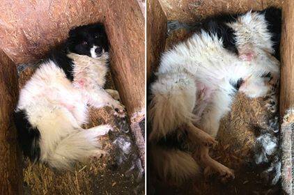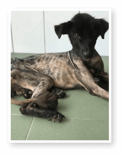 Er wurde so gefunden, vermutlich ausgesetzt. Erst nachdem er von dem verfilzten Fell befreit wurde, kam das Gerippe zum Vorschein.